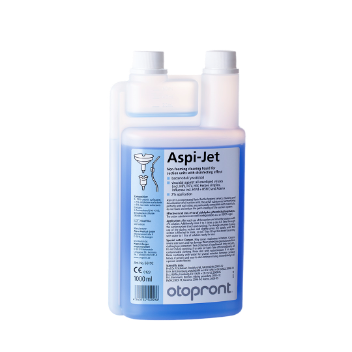 Otopront Aspi-Jet is een niet schuimend vloeibaar concentraat met desinfecterende werking voor de hygiënische verzorging en reiniging van medische afzuigsystemen, medische instrumenten incl. starre en flexibele endoscopen.